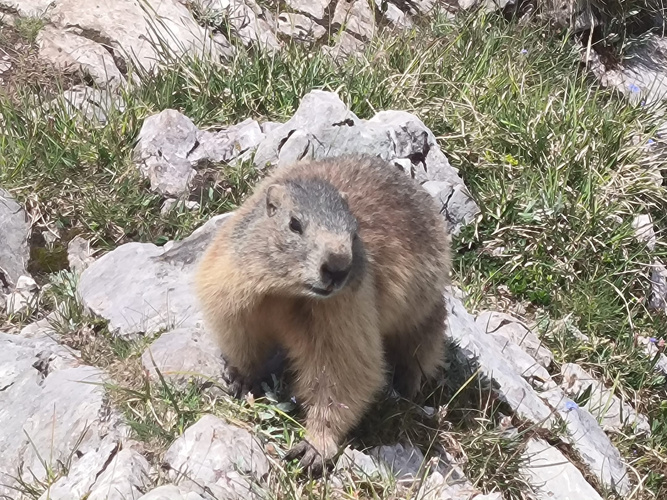 ein sehr entspanntes Murmeltier am Gipfel, die wohlverdiente Einkehr